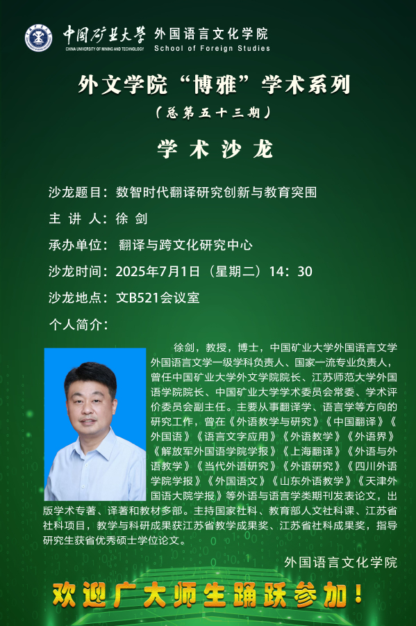 近日,外文学院在江苏省及全国教改课题立项评选中连获佳绩,获批2025年江苏省高等教育教改研究课...