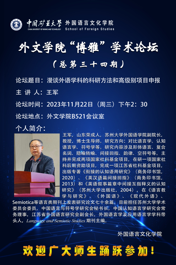 外文学院“博雅”学术论坛(总第三十四期)漫谈外语学科的科研方法和高级别项目申报
