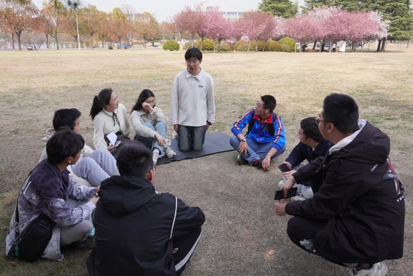 3月30日下午,英语角在博五大草坪举办了以“Hello,Spring!”为主题的户外英语交流活动,旨在通过游戏和语言交流的形式,提高参与者的英语口语能力。活动由pp电子游戏平台网站阳光英语学社承办,指导教师李嫣老师参加了活动。
