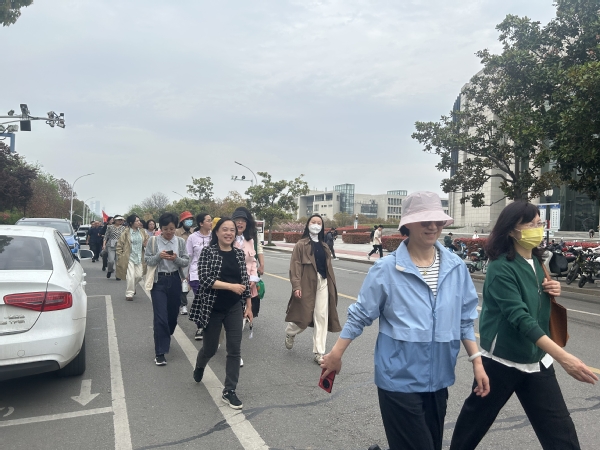 四月的徐州春意盎然,万物复苏。4月10日下午,学校举办教职工迎校庆115周年健步行活动。全院教职工在院领导班子带领下齐聚第一运动场。启动仪式结束后,大家精神抖擞,踏着轻快的步伐,在旗手的带领下沿着既定路线健步前行。春风明媚,微风不燥,大家沿途相互交流,欣赏校园的美景。