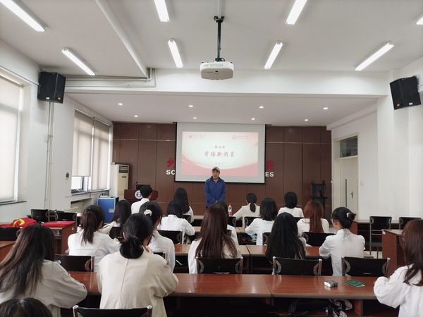 2024年5月11日下午,“薪火赓续,青春挺膺”外文学院2024上半年新团员入团仪式在学院楼B508举行。竹苑区分党工委特邀指导员、外文学院关工委常务副主任李灏老师,院团委书记、关工委秘书长闫瑾老师,2024年上半年新发展团员和优秀团员代表参加本次活动。学生团委副书记雷力彰同学主持入团仪式。