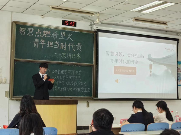 5月11日下午,pp电子游戏平台网站学生会同公共管理学院学生会、人文与艺术学院学生会、计算机科学与技术学院学生会共同举行“智慧点燃希望火,青年担当时代责”院级联办演讲比赛。