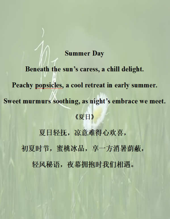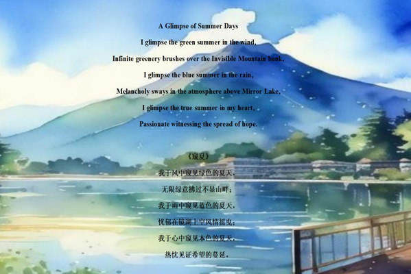 最后刘胜焕同学的作品A Glimpse of Summer Days(《窥夏》)以及郑瑶慧同学的作品Summer Day(《夏日》),运用细腻温馨的笔触,描写了自己对夏天独特的感受,不管是在不显山畔镜湖上空,还是在夏天吃一支蜜桃冰糕,享受夏日特有的甜蜜和清凉,暂时逃离夏日的温度,在CUMT享受夏日的小确幸。