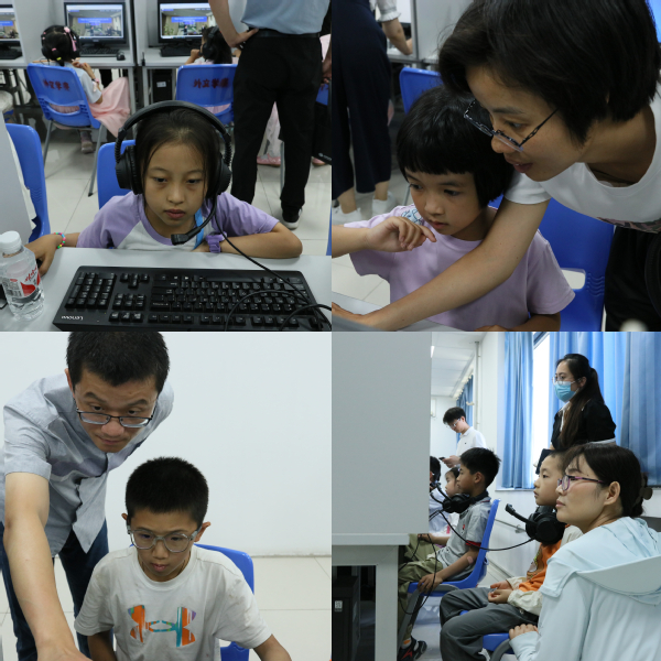 在信控电工电子实验室,电子电工领域的专家老师为参与活动的老师和孩子们上了一堂生动形象的电路启蒙课。接着,在老师的指导下,教职工与子女们都跃跃欲试,现场体验机器人编程,探索科技的奥秘。此后,在pp电子实验中心主任张慧琴老师的带领下,活动人员共同参观了外文学院同声传译实验室和虚拟仿真实验室,苗燕、官濛两位老师现场讲解口译虚拟仿真项目,教职工与子女亲自动手操作VR软件,感受身临其境的翻译情景。