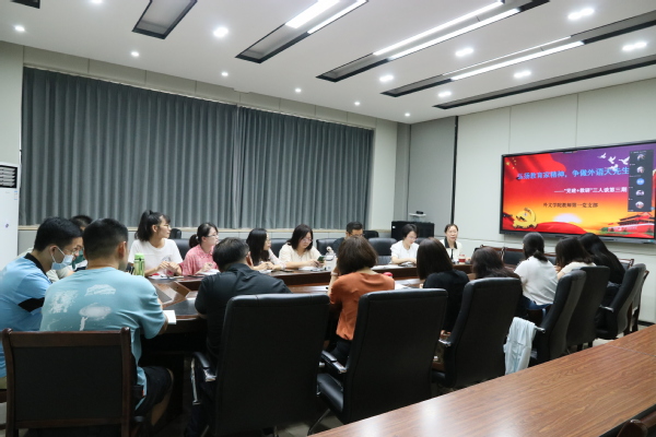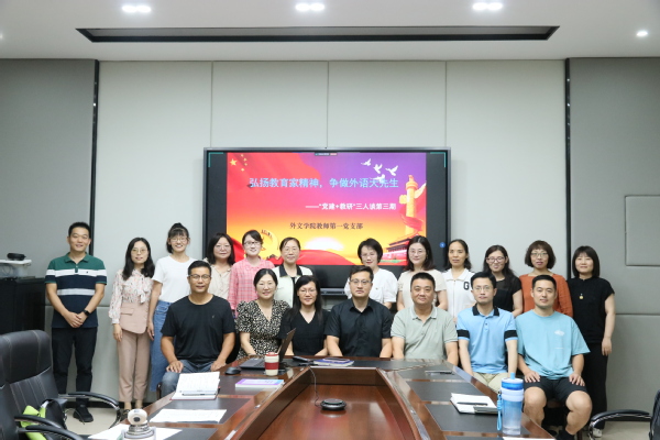 在大力弘扬教育家精神,加快建设教育强国背景下,外文学院教师第一党支部于9月13日下午2点在文B521举行了以“弘扬教育家精神,争做外语大先生”为主题的“党建+教研”三人谈活动。活动由支部书记李淑玲老师主持,刘婷婷副院长、宫蔷薇博士和张晴博士分别进行经验分享,教师第一支部全体党员参加了此次活动。