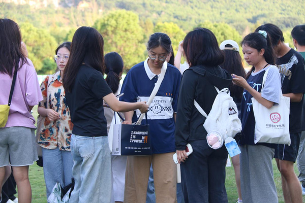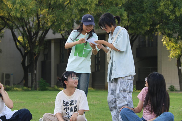 阳光明媚,笑语交织。在心理自助中心负责人的主持下,同学们以班级为单位,开展“你是谁”、“开火车”、“五毛一块”等团体小游戏。通过这些游戏,同学们对彼此的姓名、家乡有了更深的记忆。才艺表演环节进一步活跃了现场气氛,增进了同学们之间的熟悉度。活动结束后,心理自助中心成员向新生赠送了由外文学院准备的小礼物,寓意新生在大学中茁壮成长