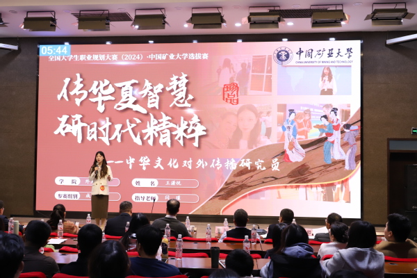 决赛现场,王潇悦以“传华夏智慧,研时代精粹”为主题,详细阐述了自己立志成为一名中华文化对外传播研究员的职业规划和实际行动,展现了清晰的职业规划和良好的精神风貌。