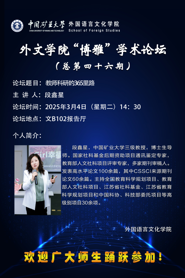 外文学院“博雅”学术论坛 (总第四十六期)教师科研的365里路