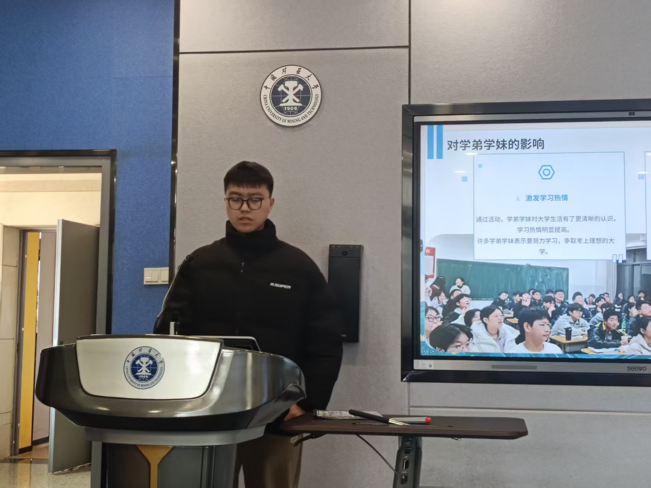 活动采用 "汇报展示 + 互动交流" 形式系统呈现实践成果。实践代表依次展示,涵盖企业见习、红色文化调研、母校回访宣讲等三大实践类型。王梦景老师在点评中指出,社会实践是课堂学习的延伸,更是价值塑造的重要载体,鼓励同学们积极参与实践,变“参观者”为“传播者”。