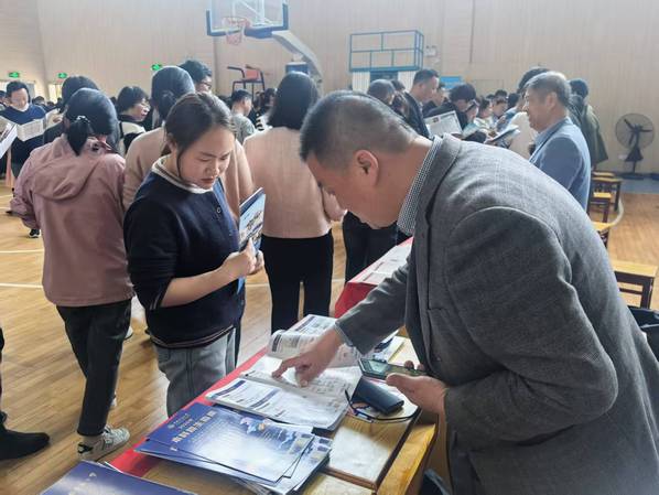 宣讲会后,董永义、苗燕两位老师在咨询展位与考生及家长展开面对面交流。围绕“录取分数线预估”“专业选择方向”“奖助学金政策”“校园生活保障”等问题逐一解答,并发放宣传手册、报考指南等资料。咨询现场气氛热烈,互动持续近2小时,累计接待咨询300余人次。