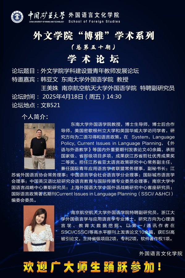 外文学院“博雅”学术系列(总第五十期)学术论坛--外文学院学科建设暨青年教师发展论坛