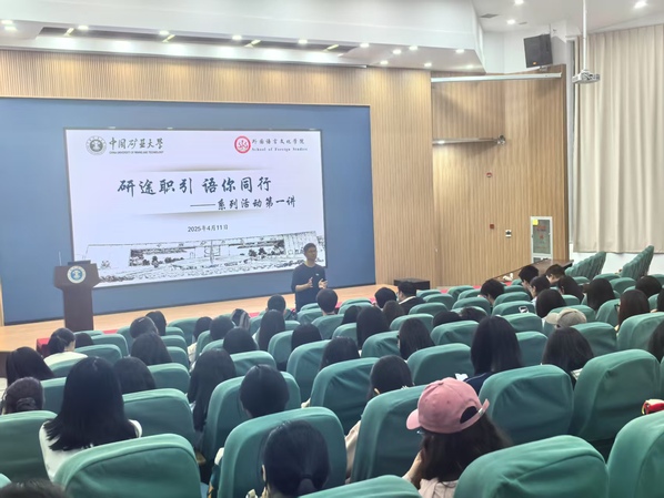 4月11日下午,外文学院在文B102召开2022级春季学期年级大会暨“研途职引 语你同行”系列活动讲座第一讲。马克思主义学院院长阎国华、院党委副书记朱正中、辅导员闫瑾、李梦娇参加。