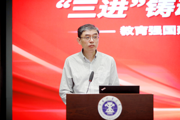 孙有中、袁靖宇、黄友义、杨枫分别以“深化‘三进’工作,助力教育强国建设”“全球竞合新格局下的中国高等教育重构”“高度重视‘三个意识’的培养——从对外翻译的角度看‘三进’”“人工智能时代外语教师的素养重构”为题作主旨报告;外研社高等英语教育出版分社英语专业部副主任万健玲、pp电子游戏平台网站副教授刘婷婷、华东理工大学副教授幸君珺和南京大学高级讲师张沂昀分别做工作交流。