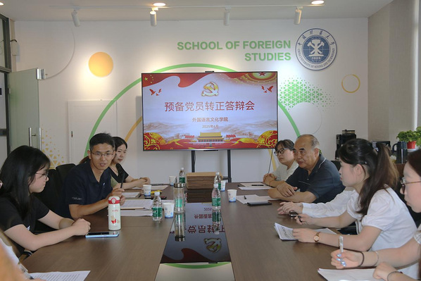 为规范做好预备党员转正工作,6月11日下午外文学院在B510党建工作室举行预备党员转正答辩会。院党委副书记朱正中、院关工委常务副主任李灏以及院兼职辅导员担任答辩评委。