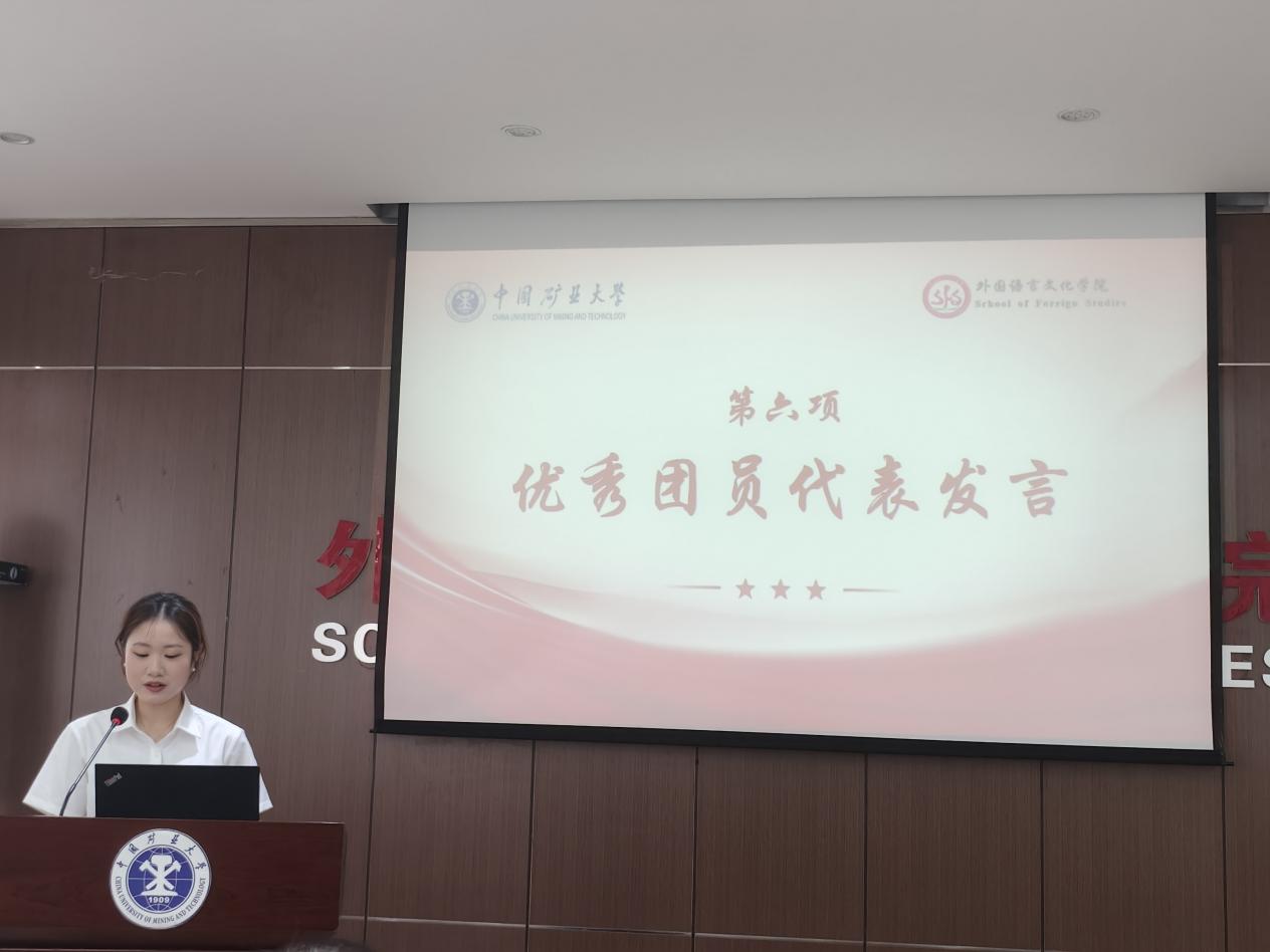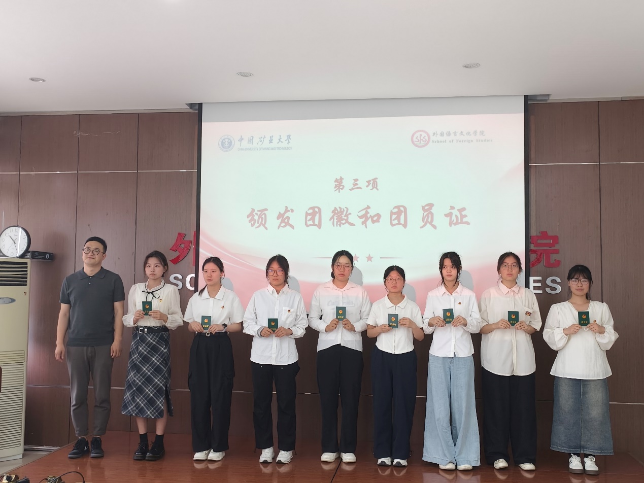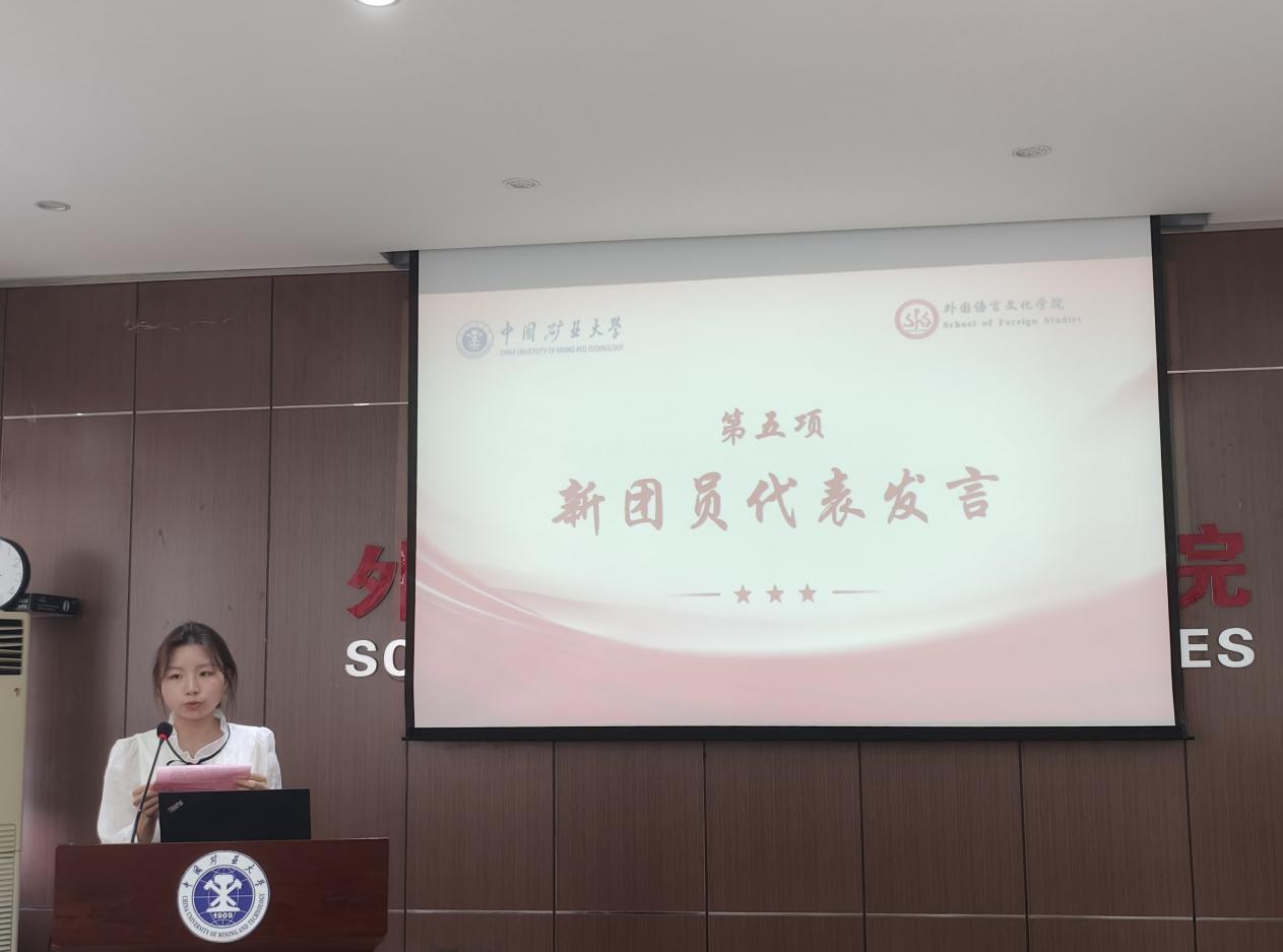 朱正中做总结讲话。他对新团员提出要求,一要筑牢信仰根基,做头脑清醒的外文人;二要练好专业本领,做讲好中国故事的外文人;三要脚踏实地奋斗,做知行合一的外文人。他勉励大家珍惜团员身份,努力成为“眼里有光、心里有爱、脚下有力、肩上有责”的新时代青年。