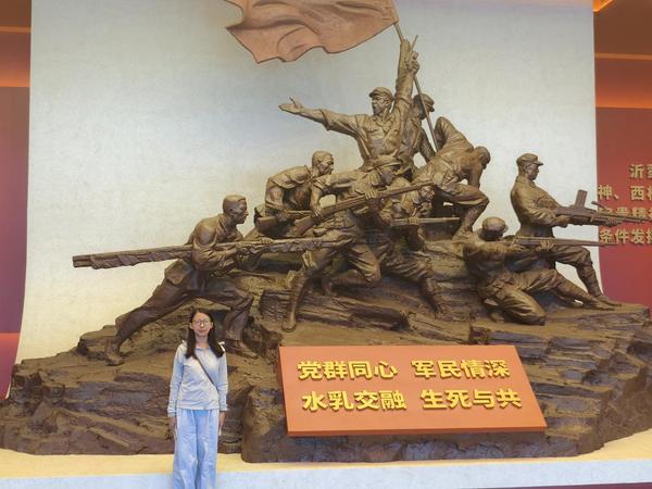 7月22日,pp电子游戏平台网站“红色文化,‘译译’生辉”实践团队前往沂蒙革命纪念馆、华东革命烈士陵园、和红嫂纪念馆等红色展馆,聚焦沂蒙精神,深入开展红色精神谱系实践活动。团队成员线下前往华东革命烈士陵园等红色场馆,收集有关沂蒙精神内涵、红嫂事迹等素材,对展馆讲解词、介绍词进行汇总记录,在参观过程中,深刻体悟到“最后一口粮做军粮”的军民鱼水情。