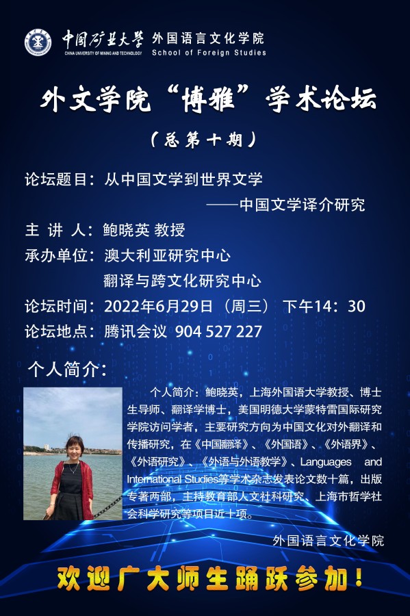 外文学院“博雅”学术沙龙(总第十期)从中国文学到世界文学——中国文学译介研究