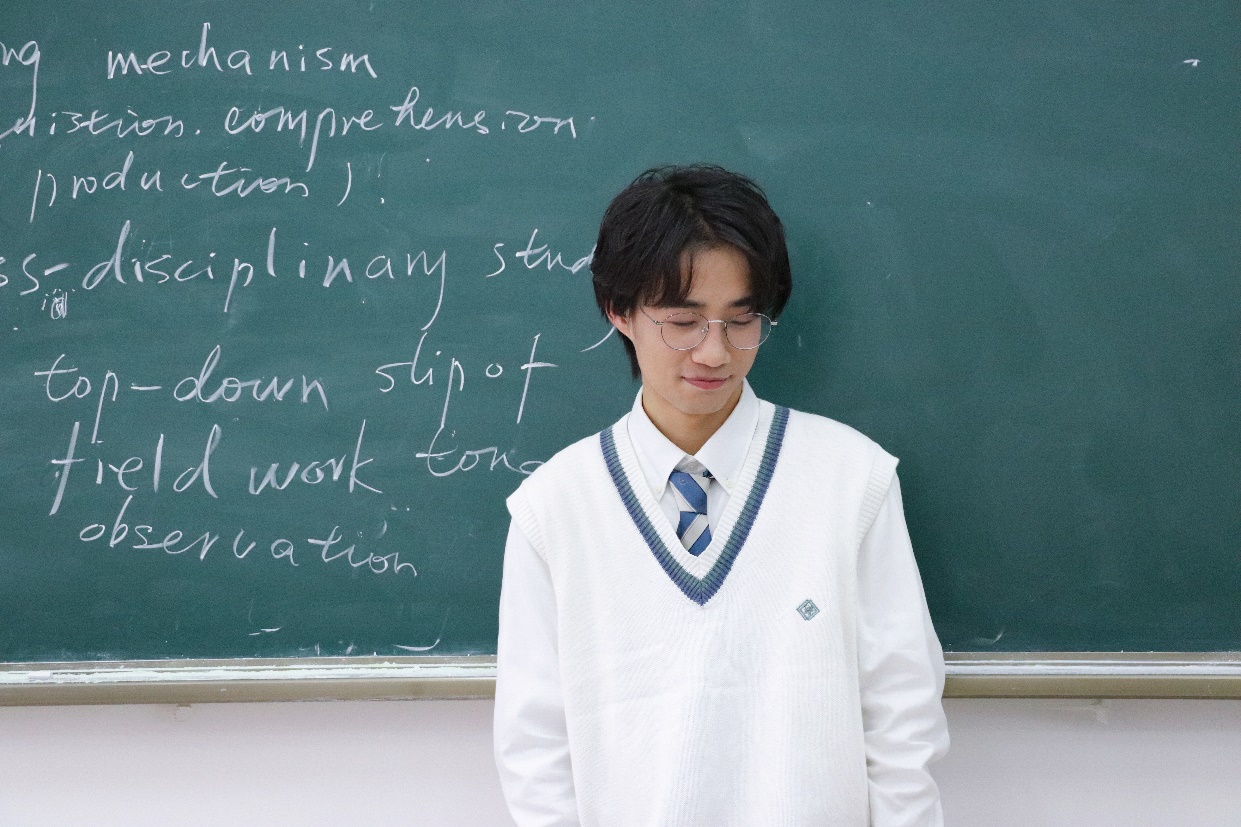 学习始终是司马弘韬头脑中最重要的事。因此,司马弘韬一直保持着良好的学习习惯,紧跟老师的步伐,及时做好笔记归纳总结。他不仅脚踏实地地将课本基础内容掌握好,课下他也不断地拓宽自己的知识面及锻炼自己听说读写能力。“也许努力会对你说谎,但努力绝不会白费,学习是一件很公平的事情,你付出得越多,也就收获得越多。”司马弘韬如是说。
