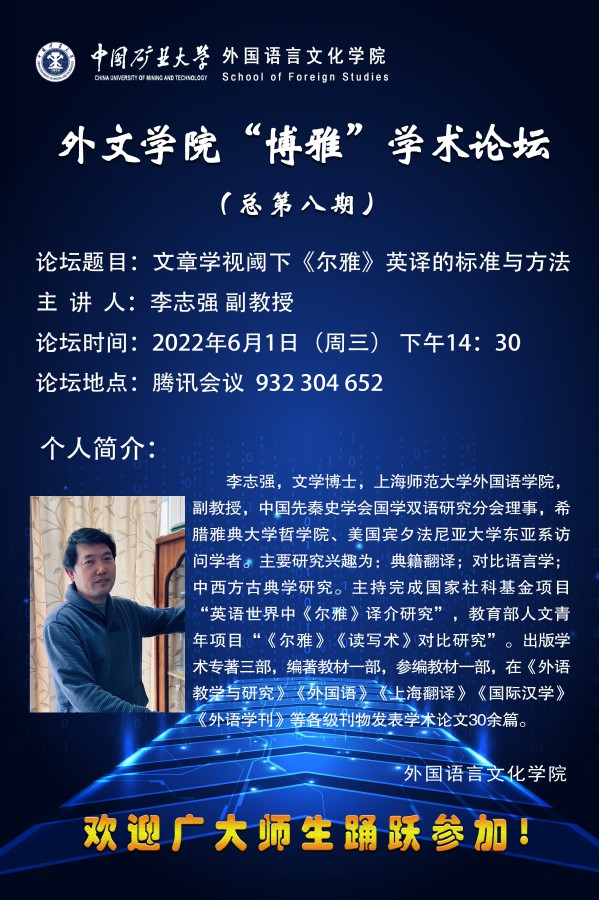 外文学院“博雅”学术沙龙(总第八期)文章学视阀下《尔雅》英译的标准与方法