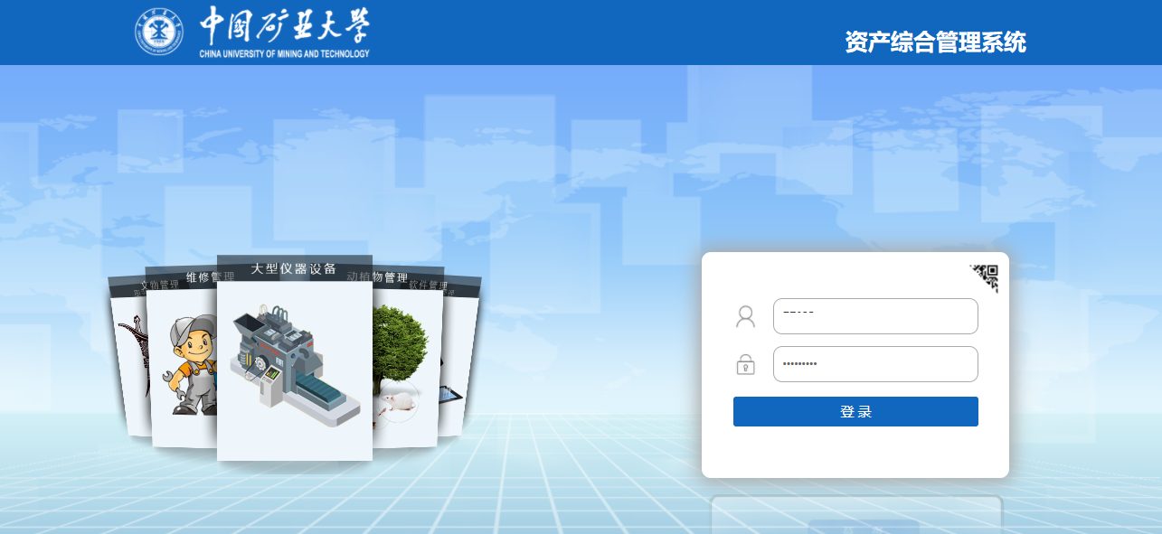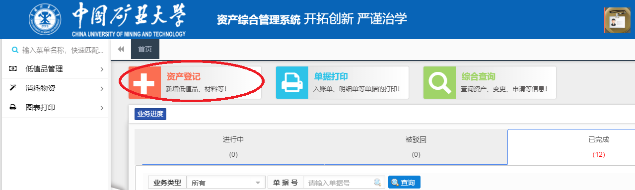 1)登录网站http://sbgl.cumt.edu.cn/asset/main/login.shtml,点击“资产登记”;