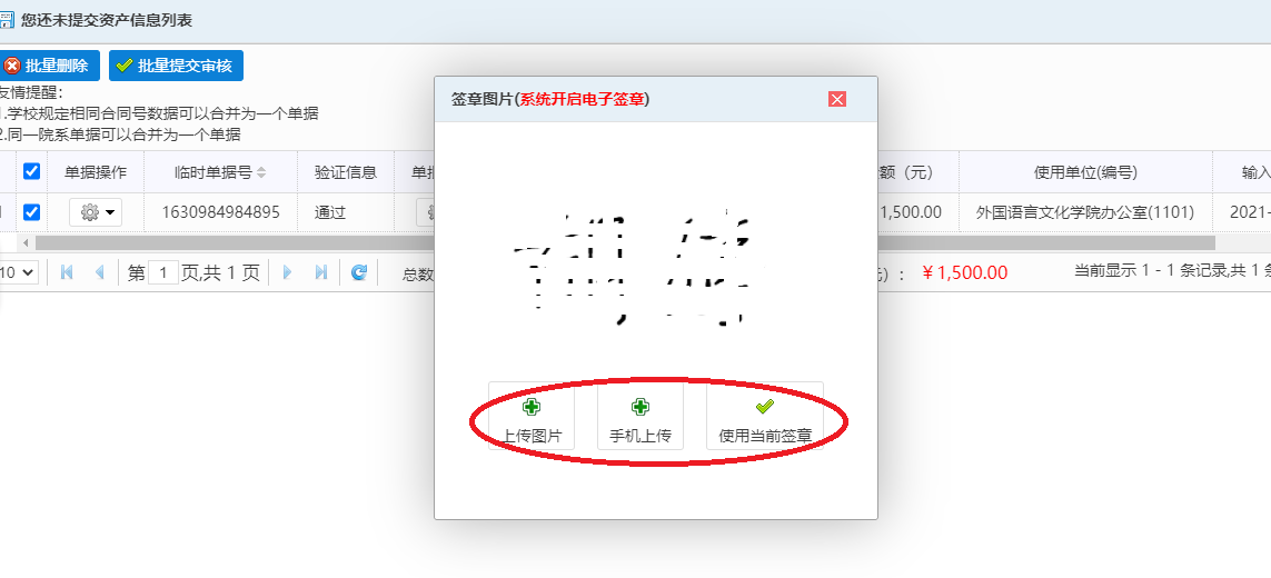6)审核通过后,点击首页“单据打印”选择对应的资产入账单打印单据,单据分三联,第一联“财务记账联”需附在报销单后交财务处。