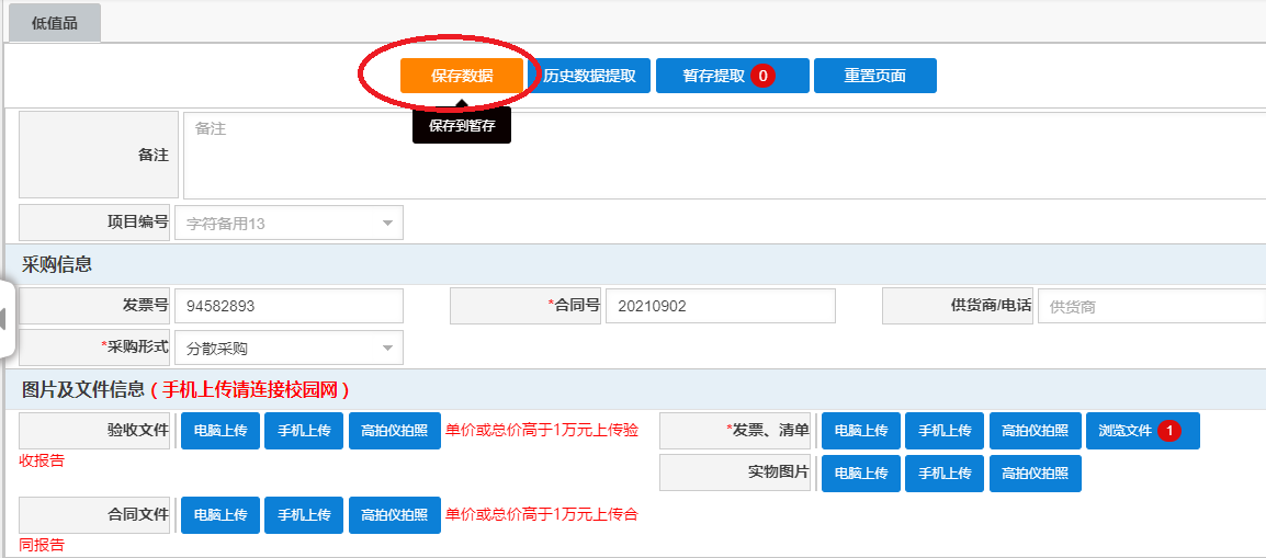 4、其他材料物资,单张发票金额在500元及以上,需要进行低值易耗品验收。报销时需附通过系统填写打印的《pp电子游戏平台网站材料、易耗品入库单》。