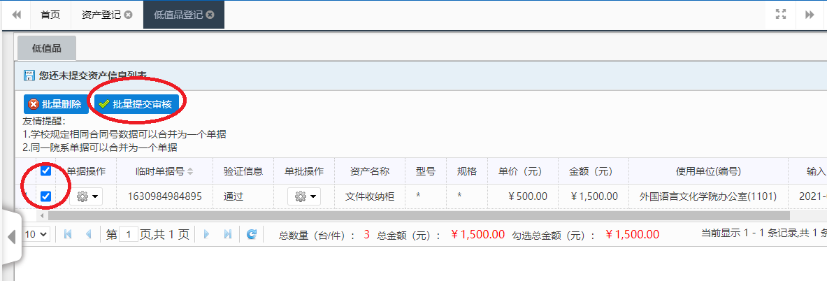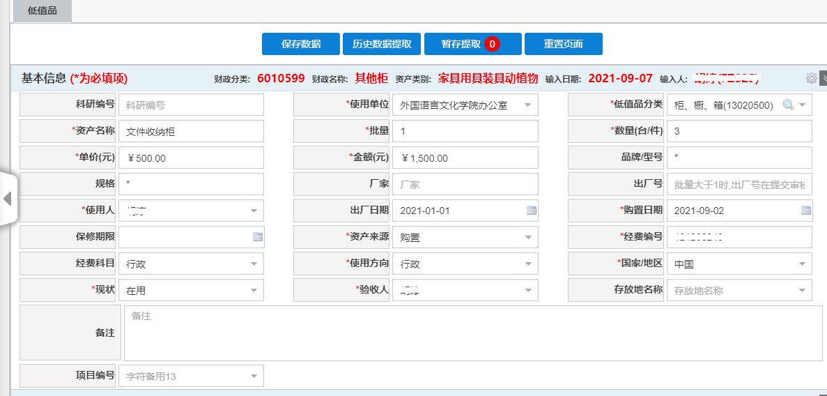 3、单价小于1000元,但批量价值大于10000元的家具,也要做固定资产验收;
