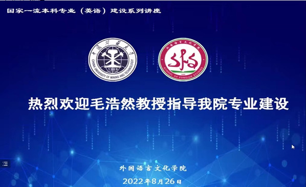 为进一步促进国家一流本科专业(英语)建设,pp电子游戏平台网站外文学院于8月26日14点30,以线上线下相结合的形式举办了题为“第三只眼看一流本科专业建设的酋长困境与创新突围”的专题讲座,讲座在腾讯会议进行,同时在学院B521会议室设立分会场。本次讲座由中国石油大学(华东)外国语学院院长、世界汉语修辞学会会长毛浩然教授主讲,由外文学院科研副院长祖大庆主持,教学副院长刘婷婷总结发言,英语专业各基层教学组织负责人和学院教师代表参加了此次讲座。