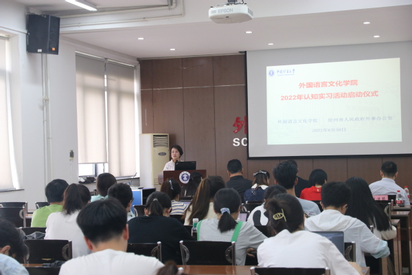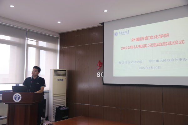 6月30日下午,外文学院在学院楼B508顺利举行2022年认知实习活动启动仪式。仪式由外文学院和徐州市人民政府外事办公室共同举办。教学副院长刘婷婷主持了本次仪式,院党委书记张向东、徐州市人民政府外事办公室党组副书记、副主任孙卫民等出席了本次启动仪式。