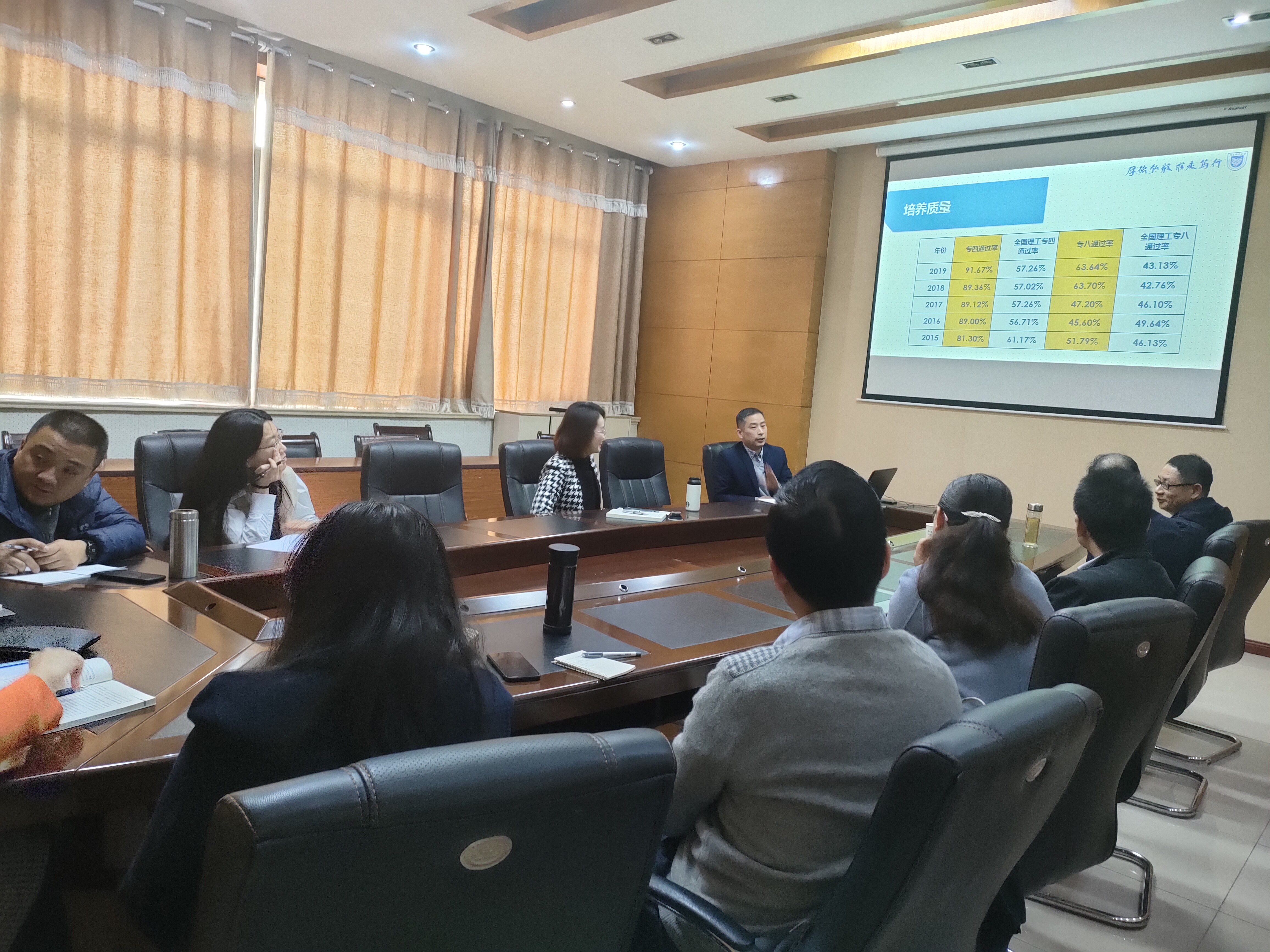 袁教授首先从教学情况、招生情况、未来规划等多个方面阐述了南邮英语专业的发展现状,并提出英语专业在发展中遇到的问题,如课程设置困难、青年教师数量偏少等。针对教学情况,袁教授指出“立德树人、红色基因”的教学理念,鼓励专业与学科对接,设置实践类课程,从而帮助学生将理论与实践相结合。在课程设置方面,袁教授认为教学团队与课程是重中之重,并根据南京邮电大学的课程设置情况分享了以下几点经验:专业核心课程设置要符合国家标准,过渡衔接合理;课程群要方向明确,相关性强;专业特色要明显;专业方向要明确。最后,袁教授从科研、师资团队及境外交流等方面,对英语专业的发展未来提出展望,并指出在建设英语专业及构建特色课程体系时,要注重教育均衡,并加强科研团队的建设。最后,袁教授与pp电子老师就科研机构建设、代表性研究成果发表等问题进行了深入交流探讨。