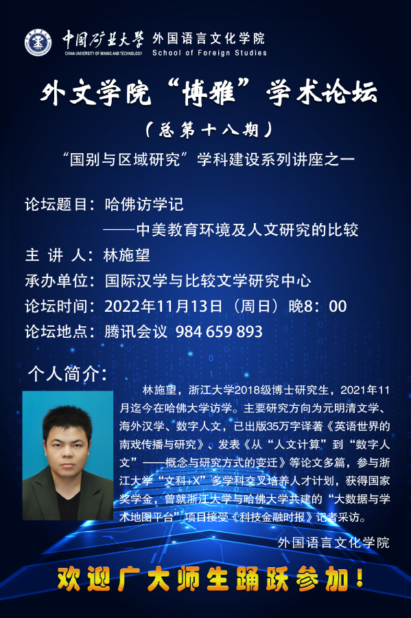 外文学院“博雅”学术论坛(总第十八期)哈佛访学记——中美教育环境及人文研究的比较