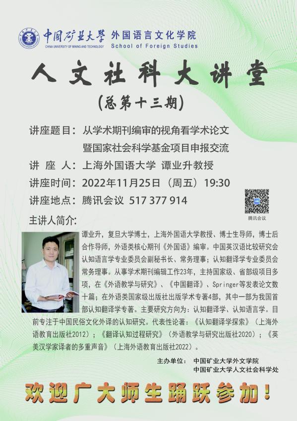 外文学院人文社科大讲堂(总第十三期)从学术期刊编审的视角看学术论文暨国家社会科学基金项目申报交流