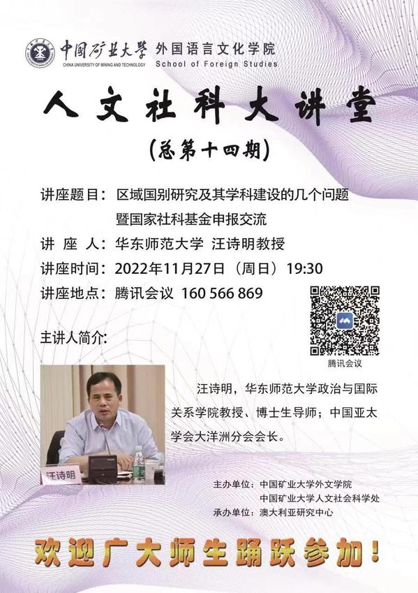 外文学院人文社科大讲堂(总第十四期)区域国别研究及其学科建设的几个问题暨国家社科基金申报交流