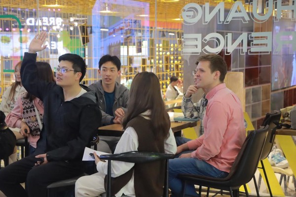 晚上7:30时,英语角活动正式开始。首先,主持人宣读活动内容及流程,活跃现场气氛,在参赛小组组内进行自我介绍,增进对彼此的了解后,进入游戏环节,游戏分别为你说我猜和看图片猜城市。最后,以小组为单位合作讨论完成为时两天的徐州旅行攻略,并选出一位队员进行总结分享。在活动过程中,同学们认真聆听、积极讨论,踊跃回答问题,现场氛围非常融洽。活动结束后,工作人员为游戏获胜小组及全体参加人员颁发奖品。