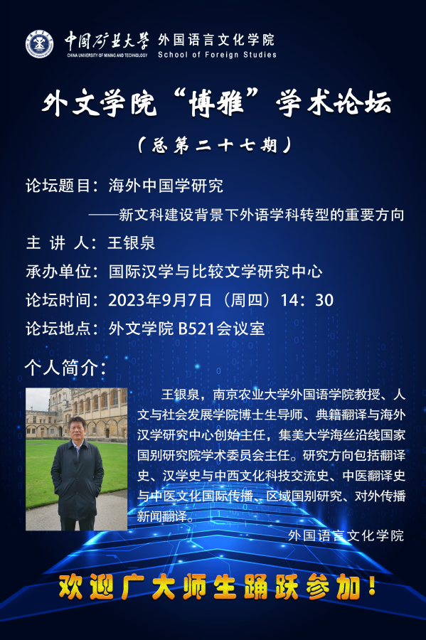 外文学院“博雅”学术论坛(总第二十七期)海外中国学研究——新文科建设背景下外语学科转型的重要方向