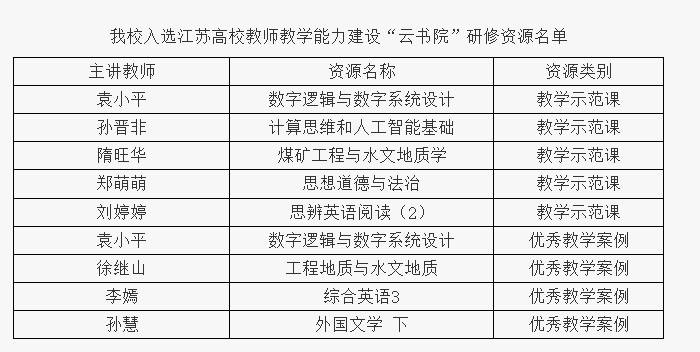 近日,江苏高校教师教学能力建设“云书院”首批认定研修资源名单公布,pp电子刘婷婷老师主讲的《思辨英语阅读(2)》、李嫣老师主讲的《综合英语3》,2门研修资源入选(全校共9门)。